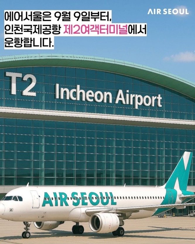 2025년 9월 9일(화) 00시부터, 에어서울은 인천국제공항 제2여객터미널에서 운항합니다.